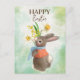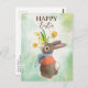 Cartão Postal Coelhinho bonito com felz pascoa de flores