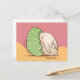 Cartão Postal Coelhinho Bonito Empurrando Ovo de Páscoa Verde