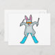 Cartão Postal Coelhinho como esquiador com esqui