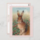 Cartão Postal Coelhinho de Páscoa castanho-bonitão e trevo