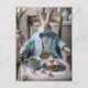 Cartão Postal Coelhinho de Páscoa em casaco azul e gravata de ar
