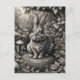 Cartão Postal Coelhinho em um jardim de cogumelos