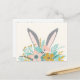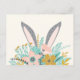 Cartaz bonito com orelhas coelhinhas aparecendo das flores da primavera.