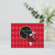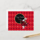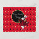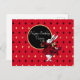 Cartão postal de saudação de aniversário festivo apresenta ilustração vintage do Coelho Branco com trajes da Rainha de Copas tingidos de vermelho com círculo de texto personalizável preto e dourado e fundo de diamante vermelho / dourado / preto