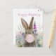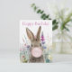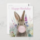Cartão Postal Coelho chiclete rosa Feliz aniversário