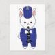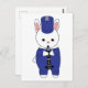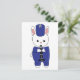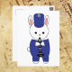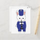Você gosta de coelhos? Você gosta de cartões postais bonitos? Um cartão-postal adorável que tem um coelho tocando clarinete em um uniforme de banda marchante azul e branco.