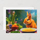 Cartão Postal Coelho Com Uma Tigela Cheia De Espaguete