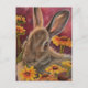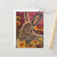 Cartão Postal Coelho do Outono Flores Amarelas Arte Aquarela