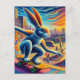 Cartão Postal Coelho do Skateboard Divertido Coloridamente