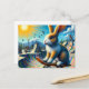 Arte gerada pela IA de um skate de coelho branco e marrom giro