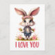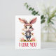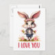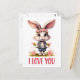 Cartão Postal Coelho engraçado fofo do Dia dos Namorados Rosa Eu