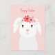 Cartão Postal Coelho felz pascoa Com Coroa Flor