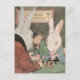 Dois coelhos jogam damas vigiados por uma fada. Um cartaz de ponta de agulha com uma cenoura no fundo. Uma ilustração antiga de um livro infantil de 1922.