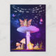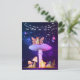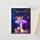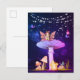 Cartão postal de Fantasia de Cogumelo com uma fada e um rato fofo.