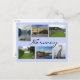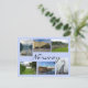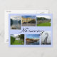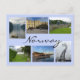 Cartão postal com a colagem de fotografias tiradas na Noruega (incluindo o Vigeland Sculture Park, Østbanehallen, um porto perto do pôr do sol, um fiorde e uma pequena igreja da cidade).