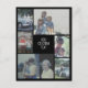 6 fotos em um padrão irregular rodeiam uma abertura para três linhas de texto. Use 2 fotos cortadas ao quadrado e 4 fotos verticais para fazer isso funcionar! O fundo é preto. Se quiser alterar as cores, clique na área de design avançada e veja mais opções.