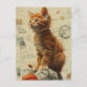 Cartão Postal Colagem de Fios Ginger Kitten Mídia mista