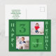 Cartão postal de festa de aniversário feliz verde para um menino ou criança. Celebre o aniversário do seu filho com fotos fofas deles neste cartão "adicione sua própria fotografia" com quadrados verdes divertidos. Adicione o nome e a idade deles. Personalize o verso para um convite de festa ou cartão postal de presente.