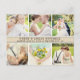 O obrigado de casamento elegante que você posta apresenta seis (6) espaços para retratos de dias de casamento com um beige personalizado / ouro de champanhe e um monograma preto na frente e obrigado sua mensagem que pode ser personalizada no verso. O esquema de cor bege e preto pode ser modificado para coordenar com suas fotos. Os filtros de fotos estão disponíveis por meio de personalização.