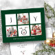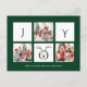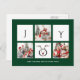 Envie saudações de feriado personalizáveis e personalizadas para amigos, colegas e familiares em cartões simples, elegantes, modernos e sofisticados com design de colagem de 3 fotos em estilo festivo e minimalista natural! Na frente, uma colagem de três fotos cercada pela palavra "alegria" com um rosto de rena fofo em tipografia moderna é apresentada em um belo fundo verde sage. Abaixo, a caligrafia apresenta sua mensagem de saudação personalizada com o nome da sua família em tipografia moderna.