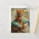 Cartão Postal Colagem de Meia com Gatinho Gengibre Mídia Mista