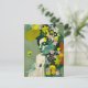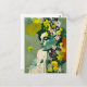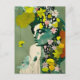 Cartão Postal Colagem de Mulher e Flores Rosa e Amarelo