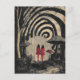 Duas pessoas caminham por um caminho surreal em uma floresta de cogumelos