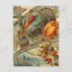 Colheita de colheita divertida no outono e Cartão de Ação de Graças com um peru num biavião com abóbora e outras comidas de colheita
