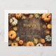 Cartão Postal Colheita Rústica Outono Abóboras e Folhas Bênção