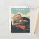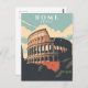 Esta ilustração de cartão-postal inspirada no vintage captura a beleza majestosa do Coliseu de Roma banhado em suave luz da manhã. Estilizada após impressões de viagem clássicas de meados do século, a paleta de cores quentes e formas texturizadas evocam nostalgia para a idade de ouro do turismo europeu. Um souvenir atemporal ou presente para amantes da história, arquitetura e cultura italiana