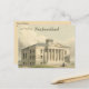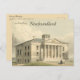 This postcard features a lithograph from 1850 of the Colonial House in St. john's, Newfoundland. According to seethesites.ca, "The Colonial Building was home to the Newfoundland and Labrador Legislative Assembly from 1850 until 1959. A gem of neoclassical architecture, the building’s grandeur is a testament to the optimism its builders felt about our future. Beautifully restored, this building is once again a gathering place for people to explore, contemplate, challenge, commemorate, and debate our story of governance."