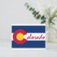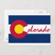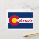 A bandeira vermelha, branca, azul e dourada do estado do Colorado. A letra gigante "C" na bandeira foi usada como primeira letra do nome do cheio "Colorado" escrita em script na faixa central branca.