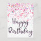 Cartão Postal Colorida Confetti Feliz Aniversário Rosa