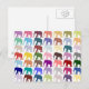 Esta design divertida e colorida apresenta um padrão de silhuetas de elefantes em múltiplas cores.
