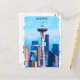 Este é um cartão postal impressionante de Seattle Washington mostrando a linha do horizonte da cidade americana no oeste com seus importantes prédios e marcos como a famosa torre. Produto incrível para cada residente e turista da cidade. Faça seu próprio e compre agora.