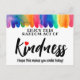 Alegrar o dia de alguém com este Cartão postal Colorido arco-íris Ato Aleatório de Bondade ! Com um design vibrante, este cartão inspirador é perfeito para compartilhar encorajamento, gratidão ou um simples ato de bondade. Seja deixado para um estranho, dado a um amigo ou usado para uma boa ação anônima, este cartão postal é uma maneira bonita de espalhar positividade e alegria.