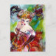 Mulher loira sofisticada, loira, de mascarada branco, vibrante, com máscaras de penas, ouro cintilante, tecidos vermelhos, fantasias de bolas mascaradas barrocas com penas. Pintura aquosa figurativa contemporânea com cores brilhantes em amarelo, azul verde, rosa, faíscas douradas, inspirada no Carnaval de Veneza, Máscaras venezianas, Comédia de Arte (Colombina - Commedia dell' Arte ) Esta design legal e artística é também um belo presente para o Grás Mardi ( Fat Terça ), Dia de os namorados.