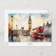 Cartão postal com Big Ben e ônibus vermelho em Lon
