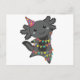 O axolote tem um chapéu de aniversário e uma grinalda colorida com bandeirolas enroladas em volta dele. Um axolote de aniversário divertido para crianças que celebram o aniversário de seus filhos.