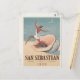 Cartão postal com impressão poster vintage de Espanha para uma visita a San Sebastian. Por favor, avise-nos se quiser que sejam feitas algumas mudanças que o agradem. Estamos felizes em ajudar se você precisar de quaisquer alterações no layout, como cores, tom, tamanho ou quaisquer outras adições, como seu próprio texto exclusivo. Apenas entre em contato conosco e fazemos o resto para sua satisfação pessoal.