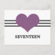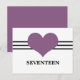Cartão postal com uma banda tripla de listras e um coração querido em roxo. Este doce e minimalista cartão postal de mesa é perfeito para um casamento moderno e elegante. Fácil de personalizar, basta adicionar o(s) número(s) de tabela apropriado(s). Clique em "Personalizar" para encontrar opções adicionais de personalização.