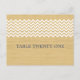 Número de Tabela de Chevron Russo Moderno e Trendy Cartão postal com um fundo de textura de madeira impresso para arte digital e um padrão de zag em ziguezague de faixas brancas de chevron. Esta design é perfeita para um casamento rústico mas elegante. Fácil de personalizar, basta adicionar o(s) número(s) de tabela apropriado(s) no campo de texto fornecido. Clique em "Personalizar" para encontrar mais opções de personalização.