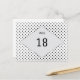 Cartão postal com um triângulo em forma de luz e um delicioso fundo de bolinhas preto e branco, modelado em preto e branco, simples e sofisticado Bolinhas moderna de cinzas. Este cartão de mesa geométrica clássico e minimalista é fácil de personalizar com seus detalhes de casamento. Localize mais opções de personalização clicando em Personalizar.