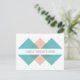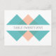 Número de Tabela de Casamento Geométrico e Moderna Triad Geométrico Cartão postal com um design de triângulo na moda em turquesa e laranja. Fácil de personalizar, esse design simples mas elegante pode ser personalizado adicionando os números de tabela apropriados no campo de texto fornecido. Clique em "Personalizar" para encontrar mais opções de personalização.