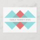 Número de Tabela de Casamento Geométrico Triad Geométrico Moderno e Chic Cartão postal com um design de triângulo na moda em turquesa e vermelho. Fácil de personalizar, esse design simples mas elegante pode ser personalizado adicionando os números de tabela apropriados no campo de texto fornecido. Clique em "Personalizar" para encontrar mais opções de personalização.