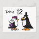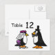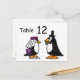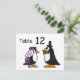 Mesa de eventos maravilhosa, cartões de números de tabela fáceis de personalizar. A noiva de desenho animado Hilarious e o pinguim-noivo (em um smoking) se misturarão com qualquer esquema de cores. Design de graça e divertida para qualquer ocasião de casamento.