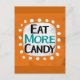 "Coma Mais Doces" é um design de texto divertido com uma forma de acento branco cercada por pontos texturizados caprichosos brancos.