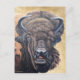 A pintura acrílica de Linda Baysinger Peck de um Buffalo Americano, ou Bison, comendo grama, em Dakota do Sul. O fundo é couros falsos.