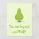 Um obrigado de comida que você postcard que apresenta uma ilustração de pera sorridente e as palavras "Você está além do comPEAR!". Este trocadilho positivo e fofo de uma forma divertida para mostrar seu apreço. A parte de trás do cartão-postal tinha as palavras "Obrigado" e pode ser personalizada. Comida Pun Obrigado Pear Fruta Comida Cuada Cartão-postal Sweetsham Comida Art | ©Melissa Patton Artist/Illustrator