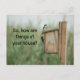 Alcance à distância para enviar um belo cartão postal pelo correio. Fotografia de dois pássaros minúsculos em uma casa na natureza. Um pássaro em cima da casa, um está se espiando. Legenda engraçada no cobrir é "Então, como estão as coisas na sua casa?" Manter como está ou personalizar para fazer a mensagem exata que você deseja. Compartilhe esta visão serena da fotografia natural com os seus pensamentos. Fotografia da natureza preservada nos Prados de Nova Jersey.